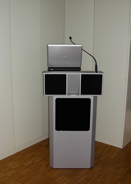mobiles Rednerpult mit Akku und integriertem Mikrofon und Lautsprecher