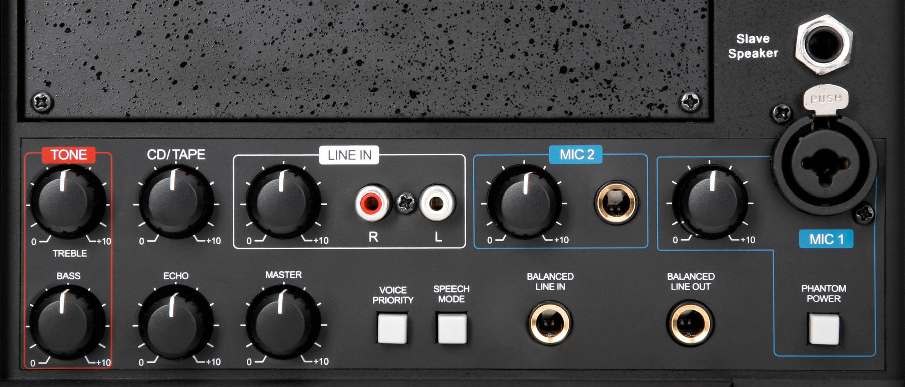 - 2 x Mikrofon Input ( 1 x XLR, 1 x 6,3 Klinke )