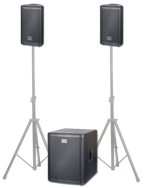 bestehend aus: 1 x Aktiv-Subwoofer / 2 x Topteil